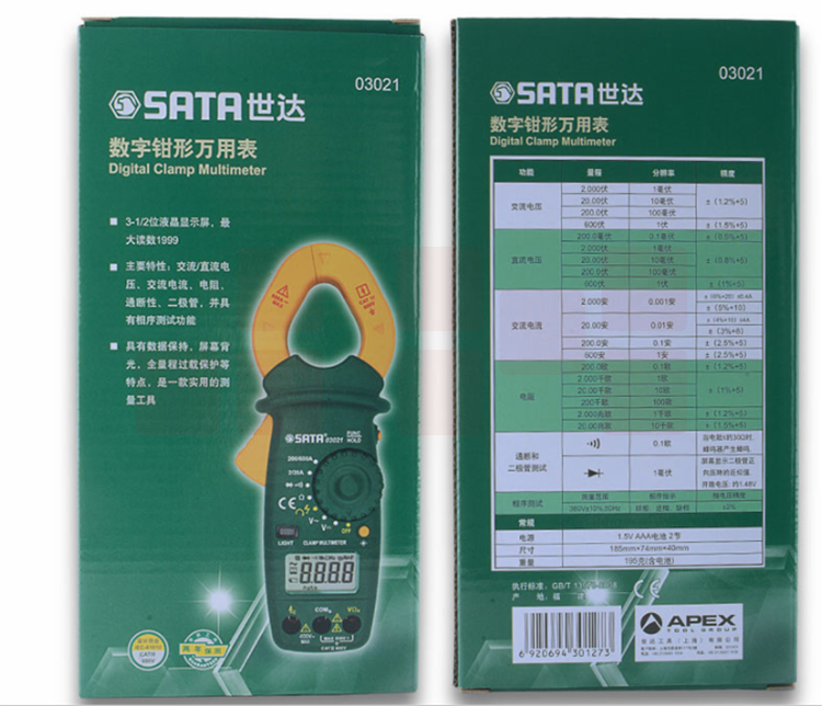 世达(SATA) 03021 数字钳形万用表