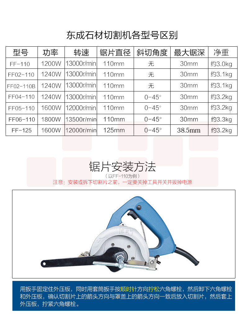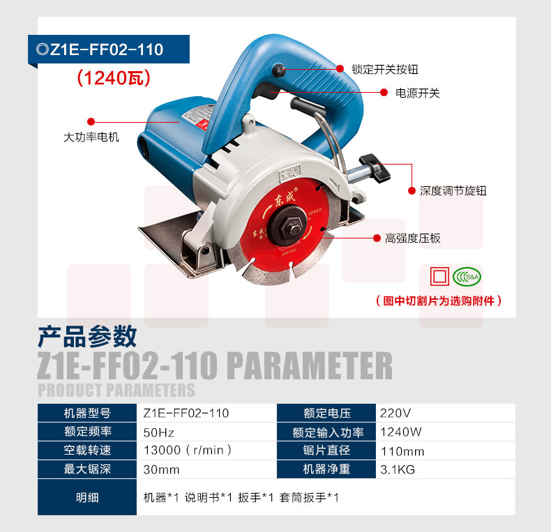 东成 Z1E-FF02-110B(1240W) 4台/件云石机/石材切割机