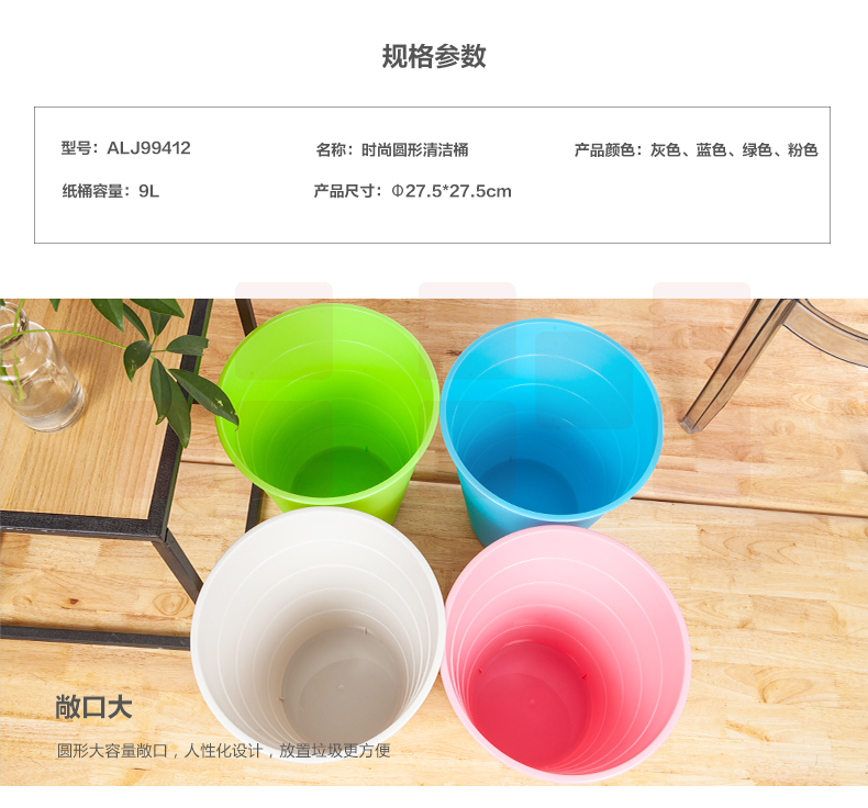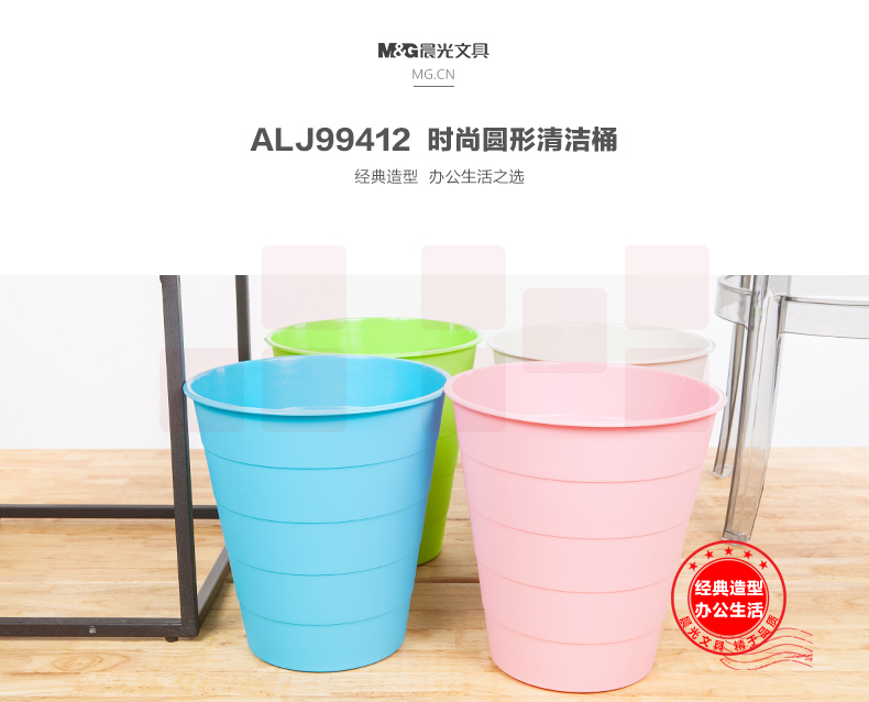 晨光(M&G)时尚圆形清洁桶 彩色垃圾桶彩色纸篓ALJ99412 灰蓝绿粉颜色随机