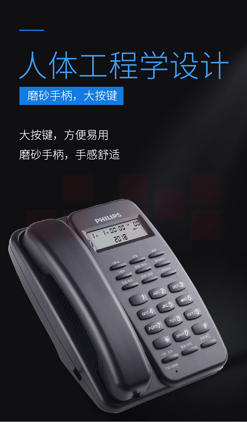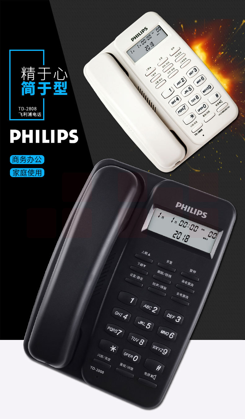 飞利浦 TD-2808 电话机座机 固定电话 来电显示 (黑色)