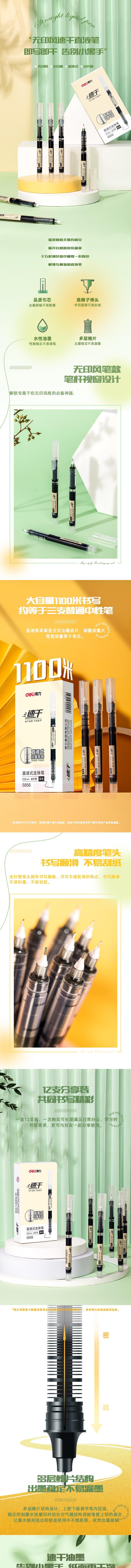 得力(deli)直液笔速干笔签字笔 0.5mm全针管中性笔 商务水笔走珠笔 红色 12支/盒S856