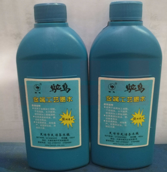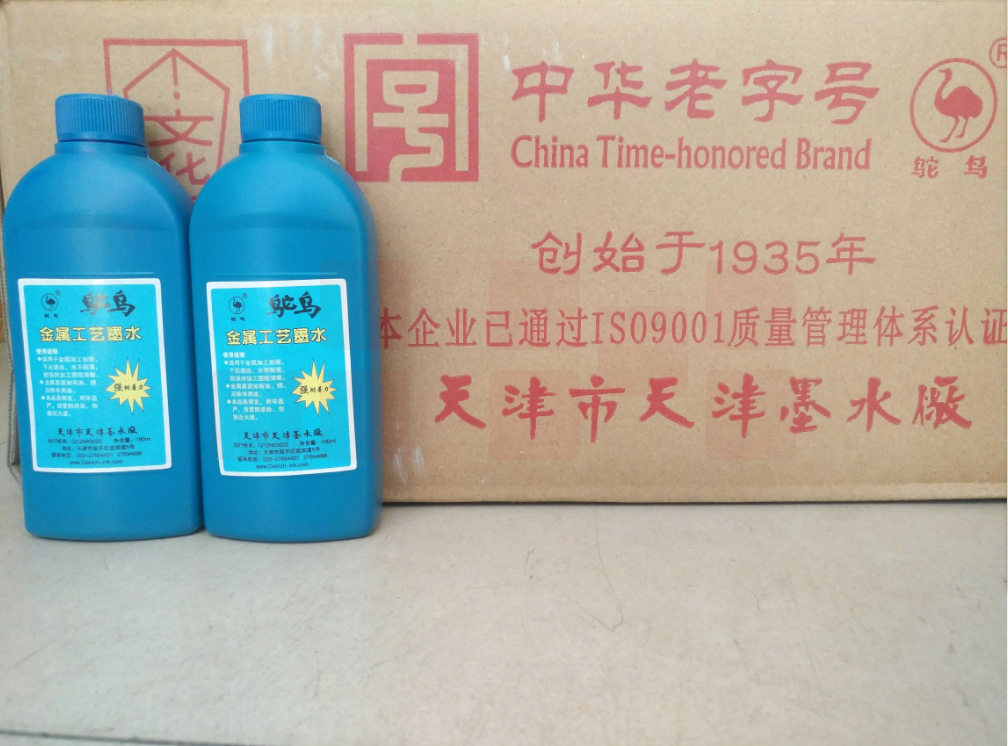 天津市墨水厂鸵鸟牌强附着力金属蓝色墨水金属划线专用不脱色划线清晰