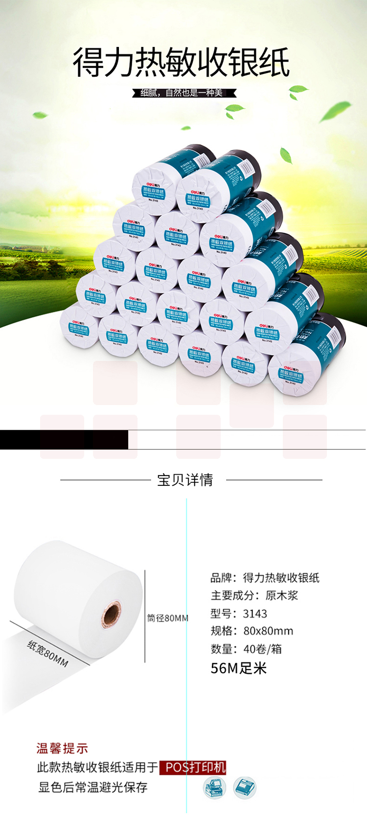 得力 3143 热敏收银纸 80mm*80mm 56m/卷 (40卷/箱)