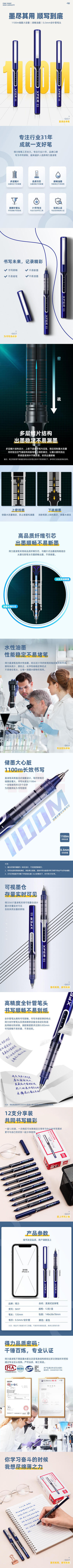 得力(deli)直液笔 0.5mm全针管中性笔拔帽签字笔 走珠笔水笔 蓝色 12支/盒 S657