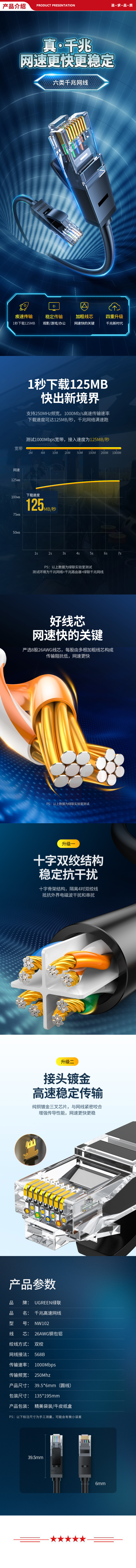 绿联 六类网线 千兆高速网络宽带线 家用电脑笔记本路由器监控线 CAT6八芯双绞成品跳线灰白2米20175