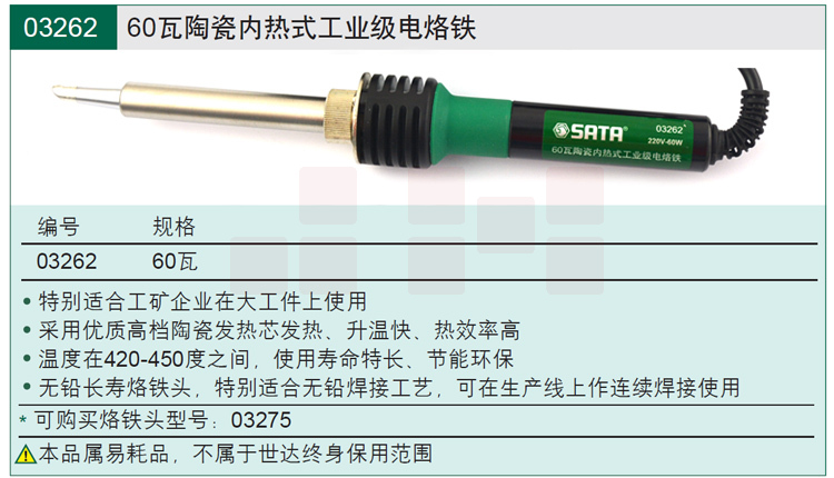 世达(SATA)03262 60瓦陶瓷内热式工业级电烙铁