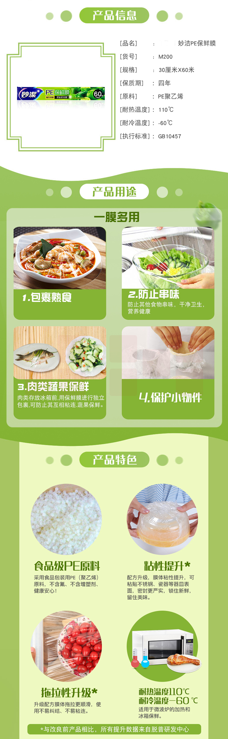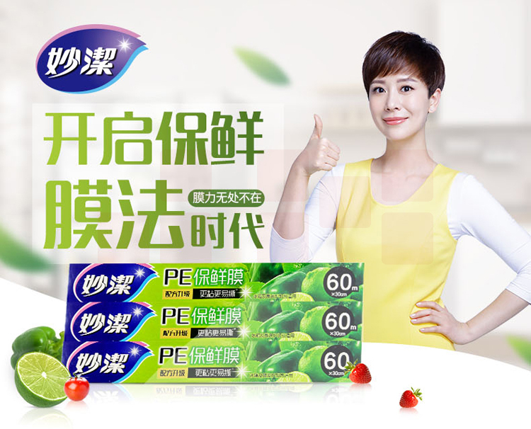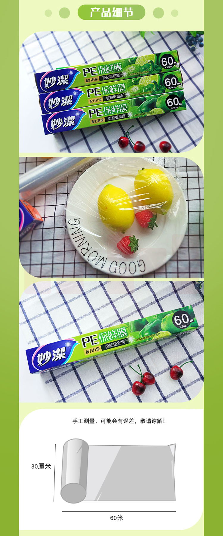妙洁( MIAOJIE ) 粘性升级 一次性保鲜膜 卫生易撕 60米*30cm