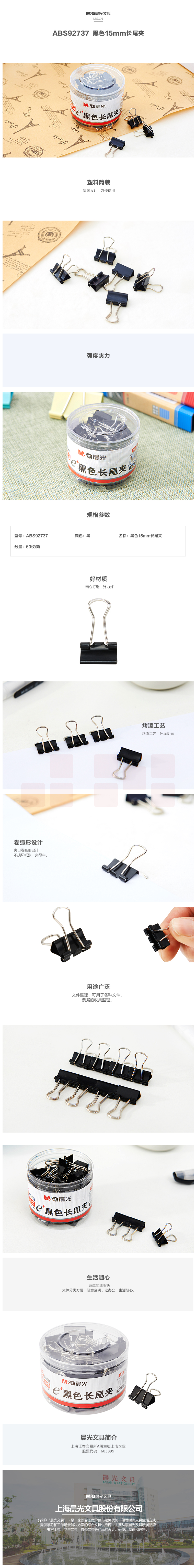 晨光ABS92737黑色长尾夹 15mm 60个/桶