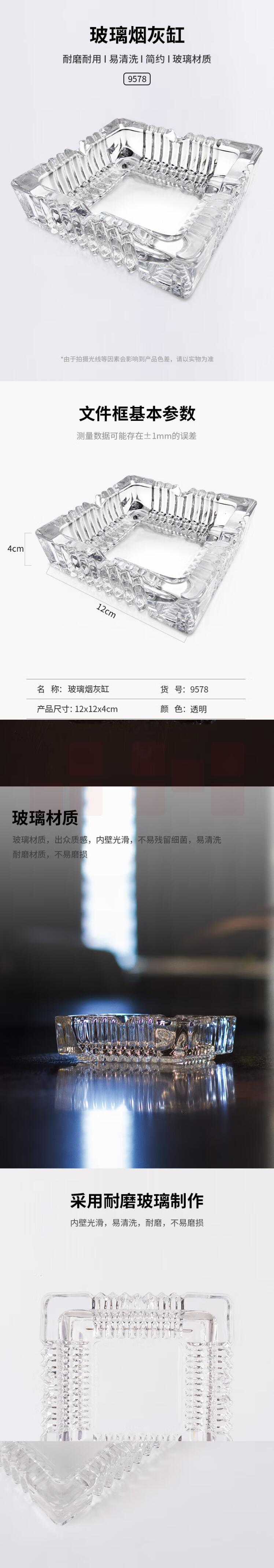 得力(deli)9578 烟灰缸 透明玻璃缸 (12*12cm)