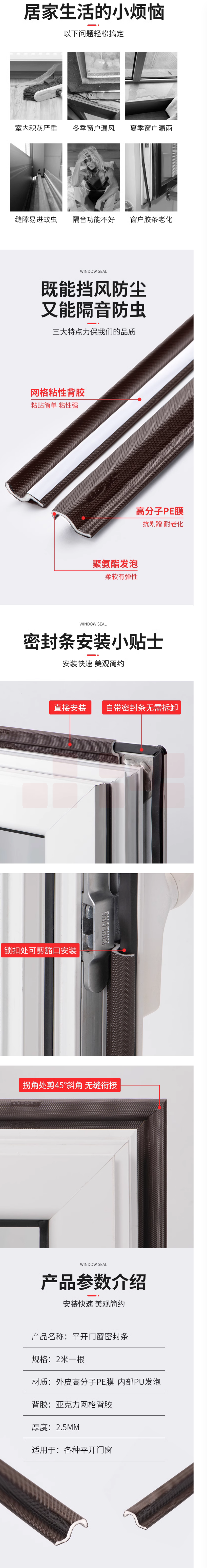 窗户密封条 门窗防漏风缝隙胶 22*12mm 2米/根 20根 货号:JC