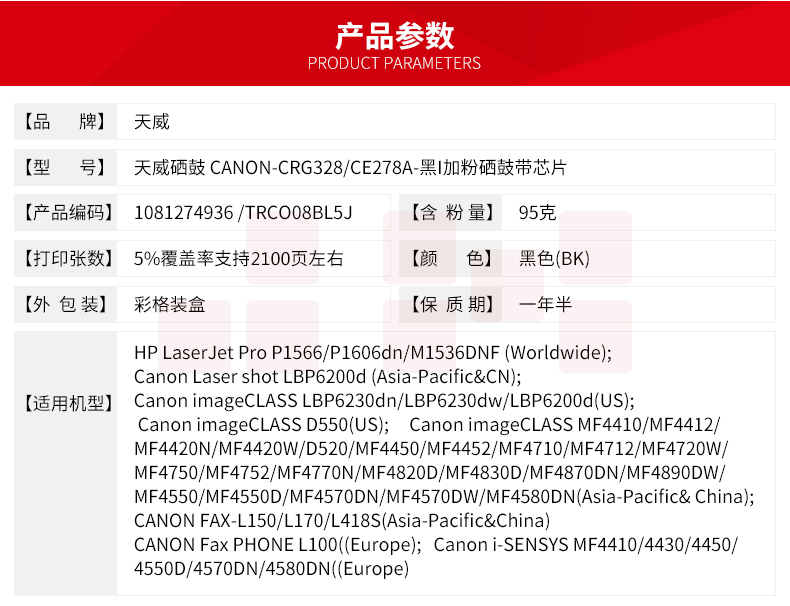 天威(PRINT-RITE)CANON-CRG328/CE278A-黑硒鼓带芯片 适用惠普CE278A硒鼓1536DNF p1566 1606DN/hp78a佳能crg328 mf4712 4752打印机LBP6230dn大容量