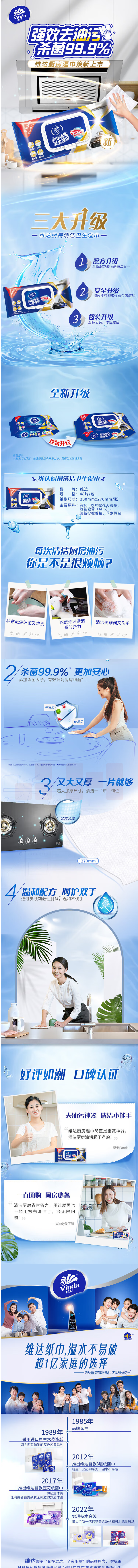维达 厨房清洁湿巾(40+8)片 48片 货号:LJ