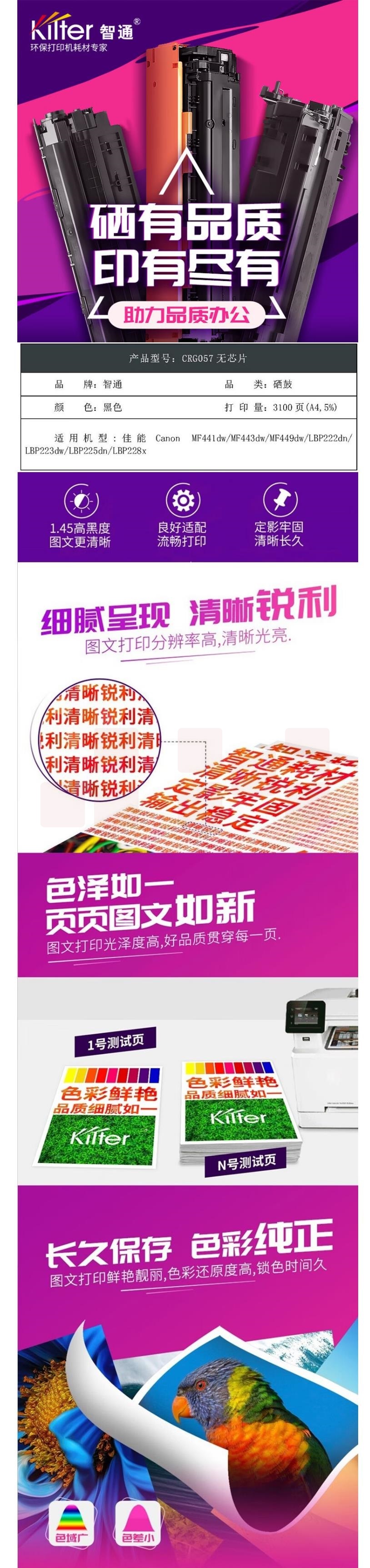智通(ZT)CRG057无芯片 硒鼓 黑色 3100页(A4,5%) 适用佳能Canon MF441dw/MF443dw/MF449dw/LBP222dn 货号:WY