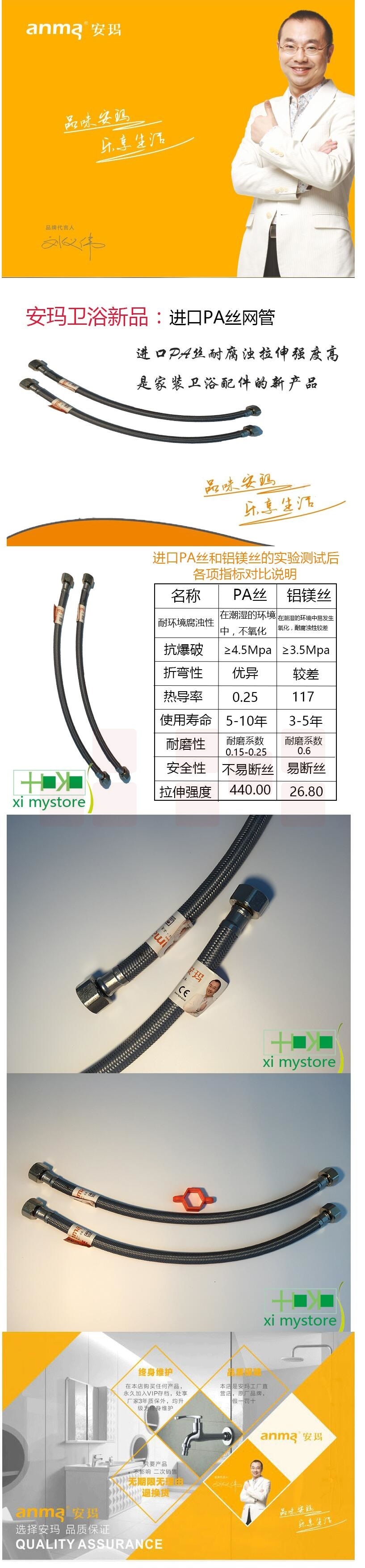 不锈钢软连接管80cm 马桶软管 编织冷热进水软管 上水管 安玛双锁母编织软管