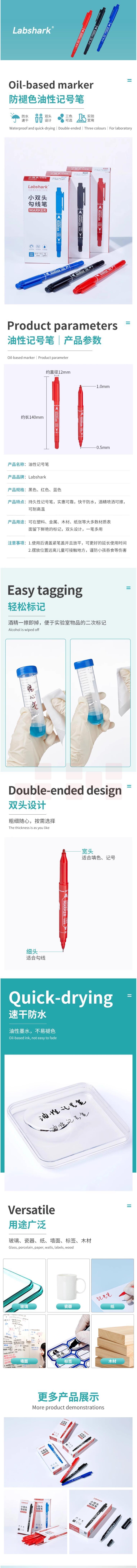 赛默飞实验室记号笔防水防褪色双头油性速干笔