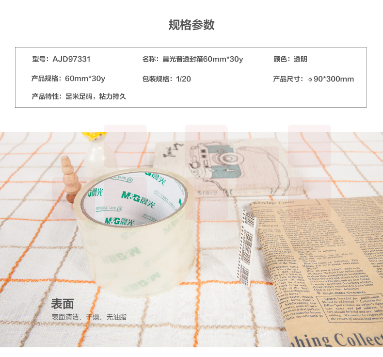 晨光封箱胶带60mm*30y(5卷)AJD97331透明胶带
