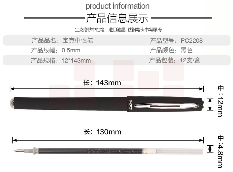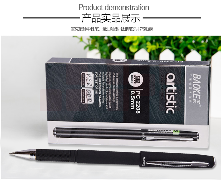 宝克 PC2208 插盖式中性笔 0.5mm 12支/盒 黑色 按盒销售