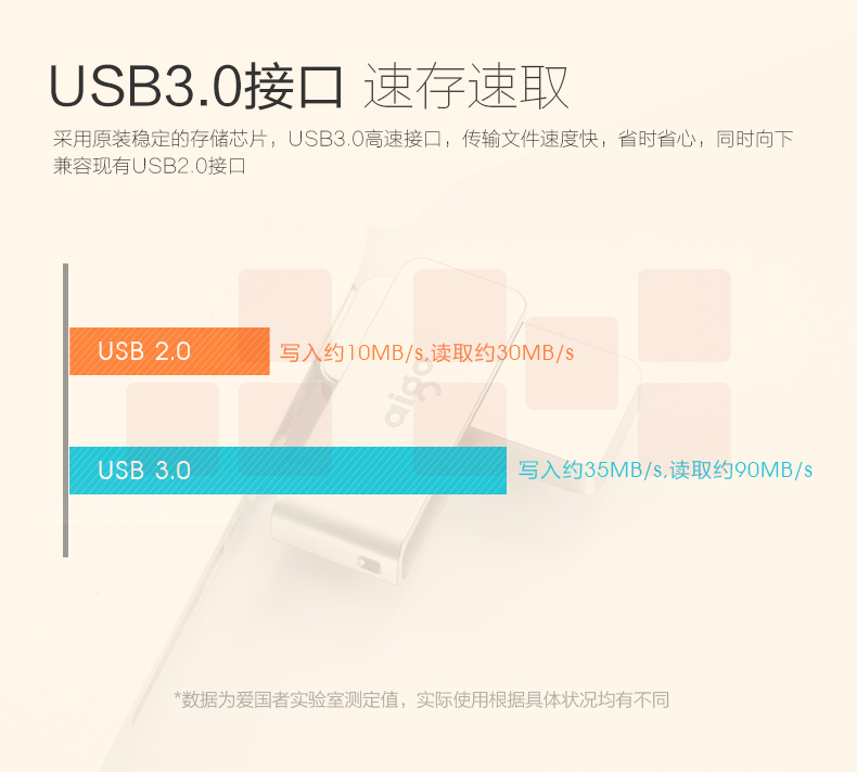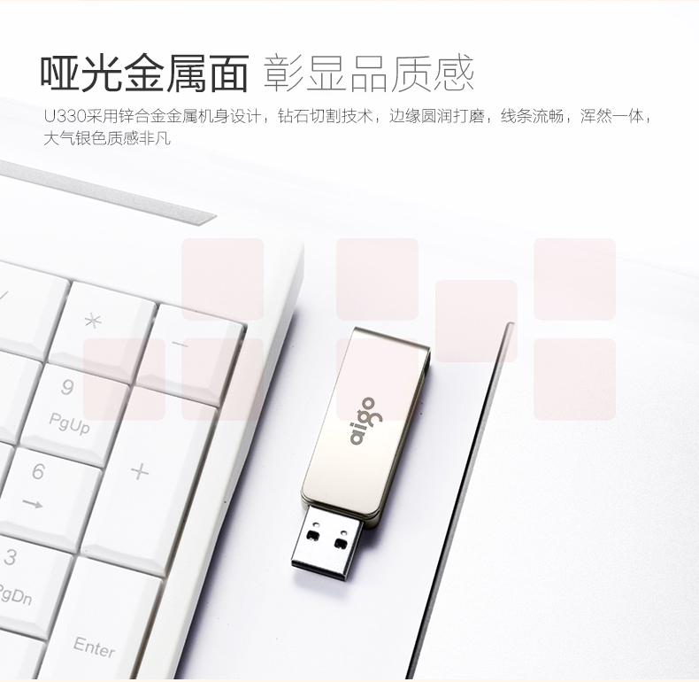 爱国者 64GB USB3.0 U盘 U330金属旋转系列 银色