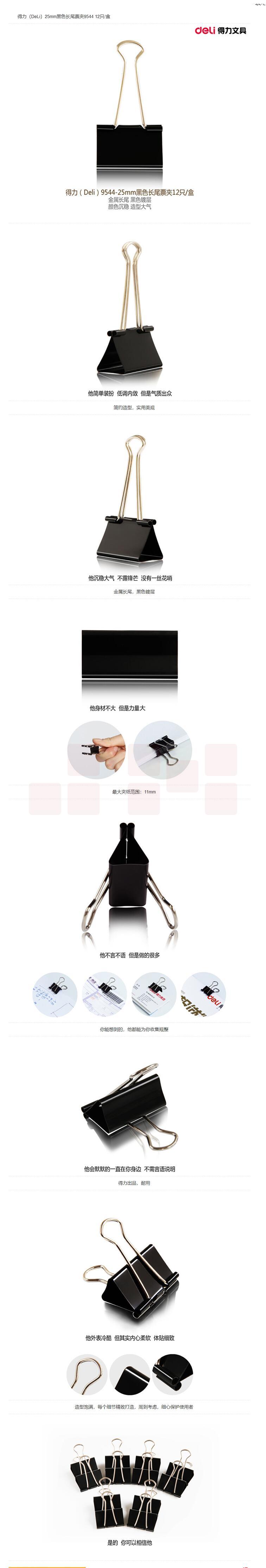 得力(deli) 黑色长尾夹 夹子 燕尾夹 票夹 25mm 9544 1中包装(12盒装)