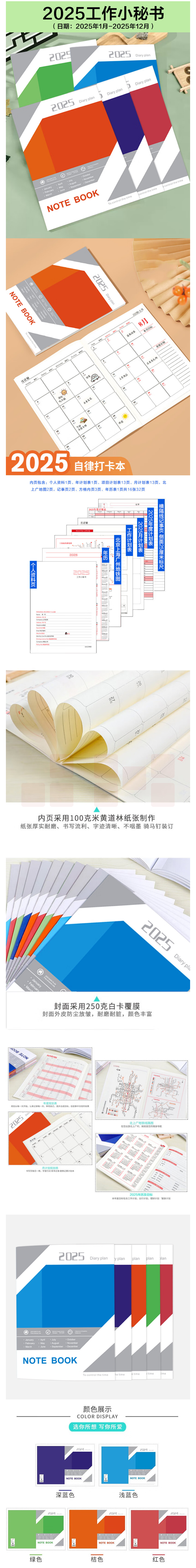 斯图 2025年工作小秘书 效率手册笔记本 月计划年计划本 5本装 货号:JC