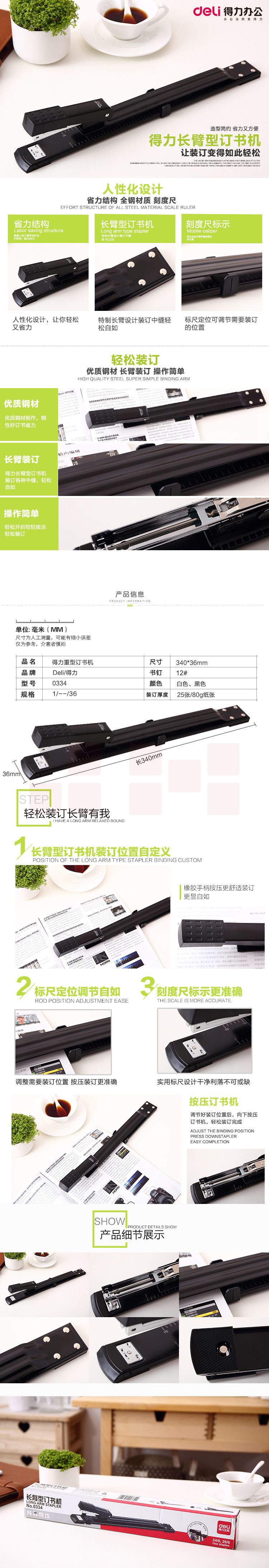 得力(deli)12#长臂订书机 中缝可订书器 A3长臂订书机适用24/6-26/6钉 0334