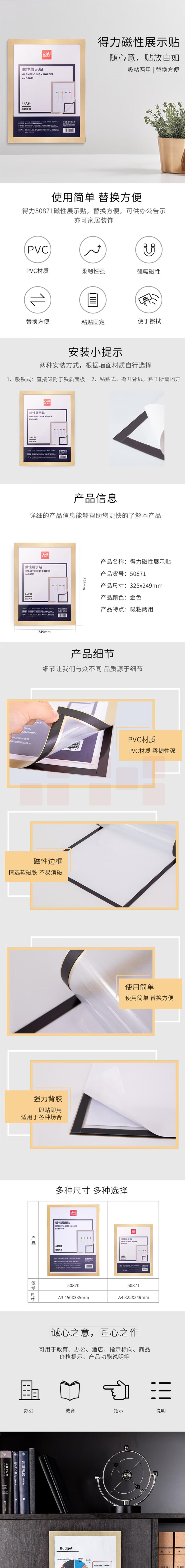 得力 磁性展示贴 营业执照框 副本保护套文件框 50871 金色297*210mm
