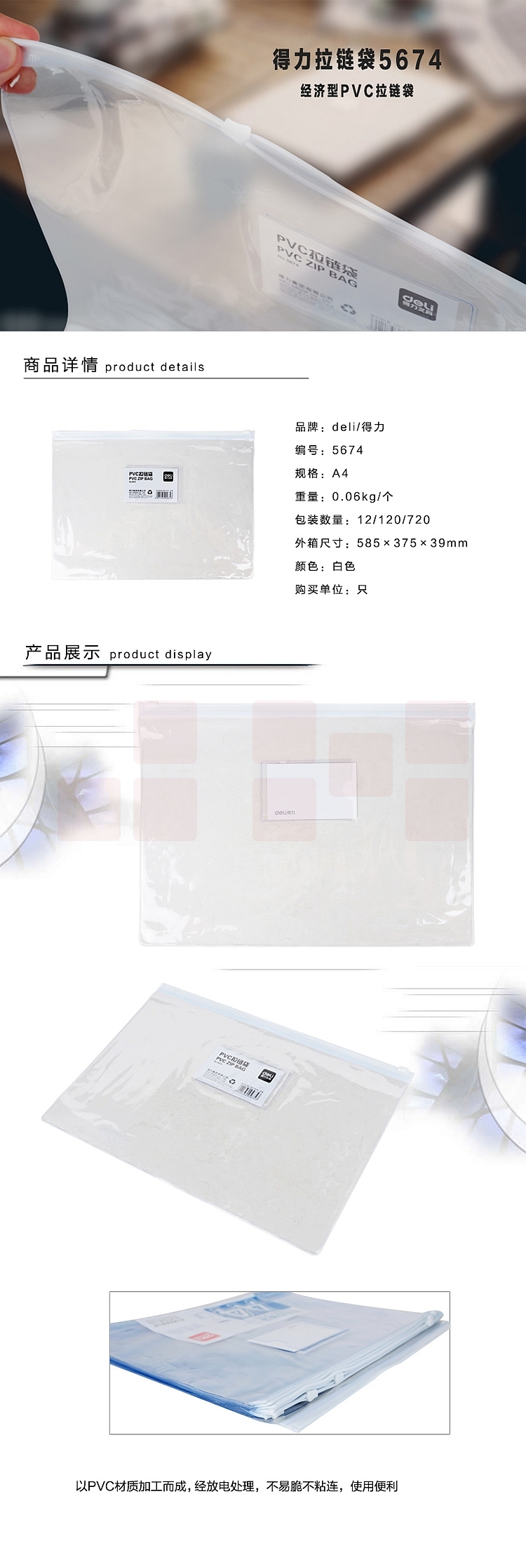 得力(deli)拉链文件袋档案袋公文袋透明收纳袋 5674(12只/包)单只价格