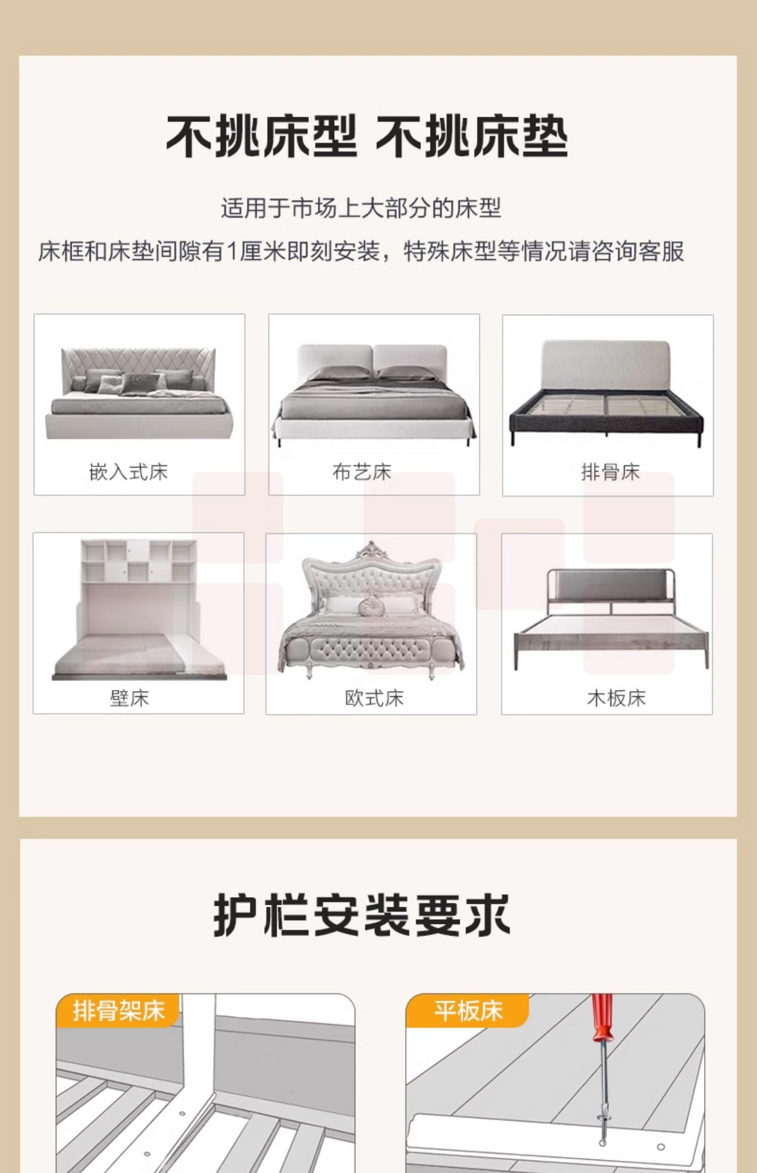 床围栏儿童防摔防护栏宝宝防护栏床上防掉床婴幼儿升降床护栏