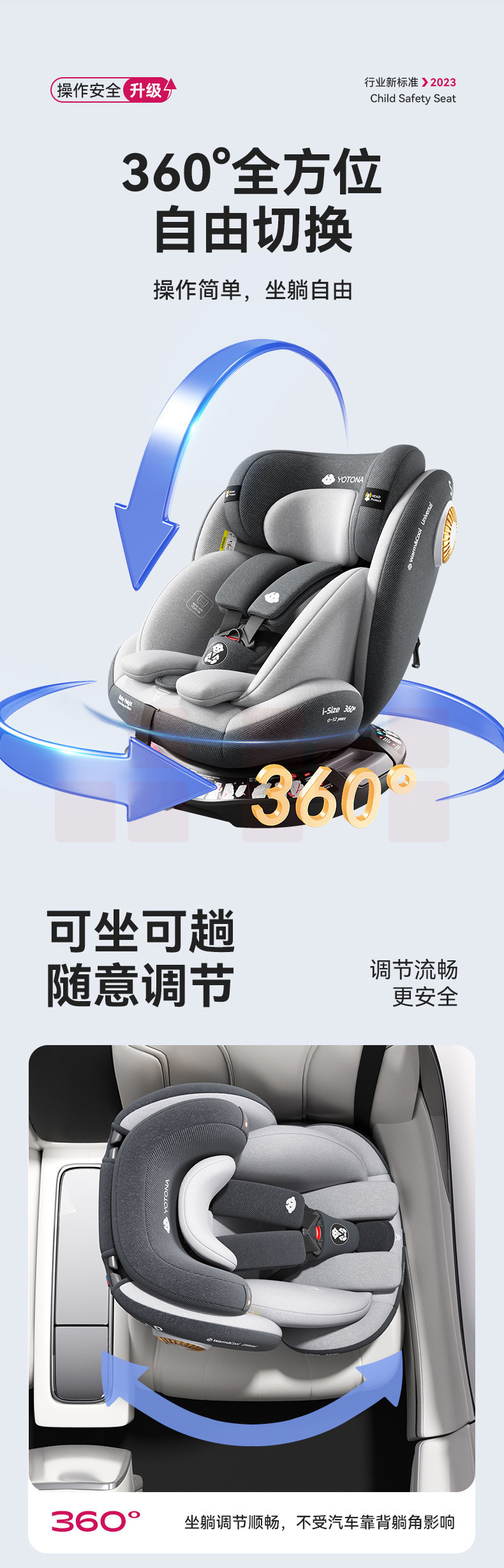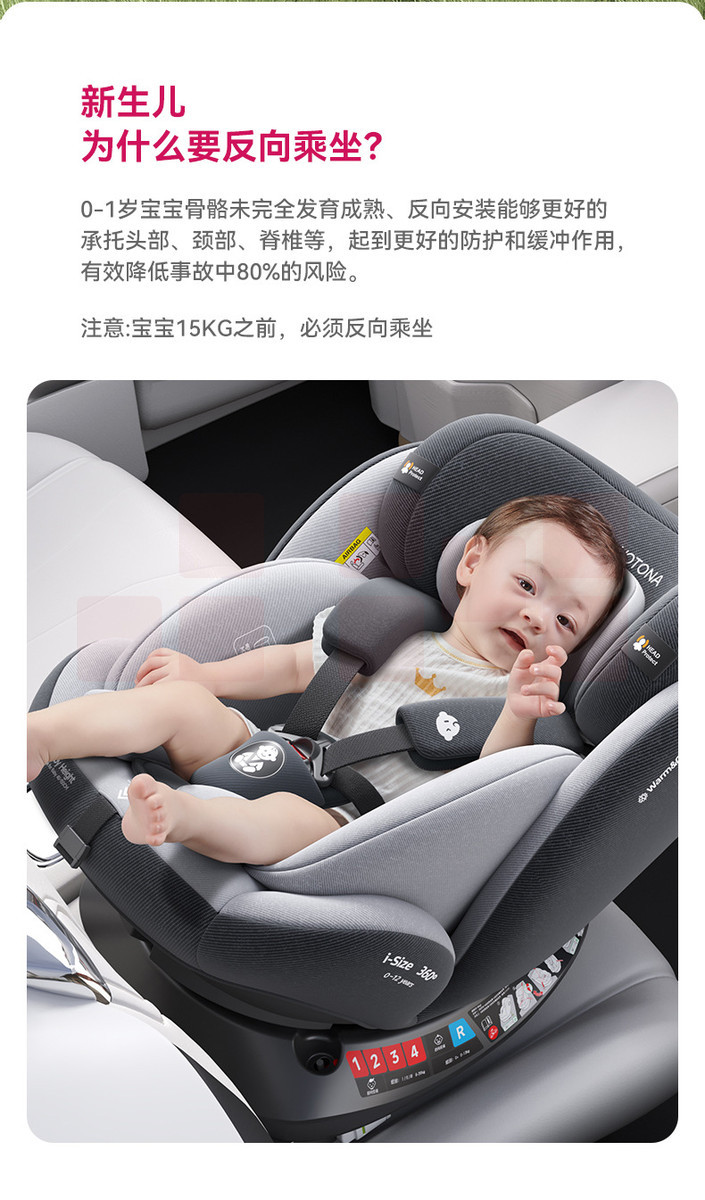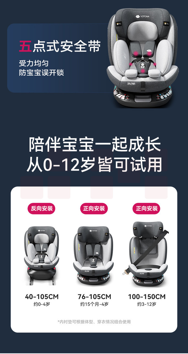 Yotona儿童安全座宝宝汽车用0-4-12岁便携安全坐可坐可躺YT01
