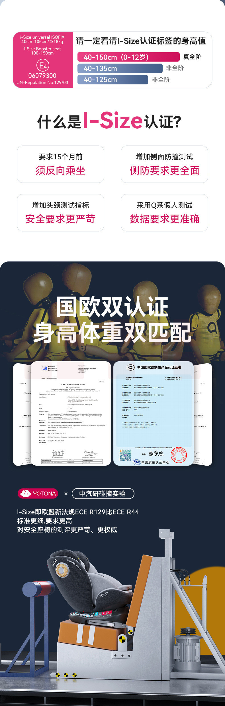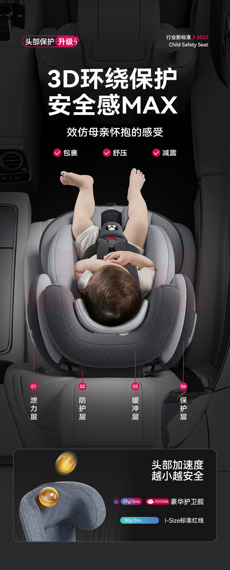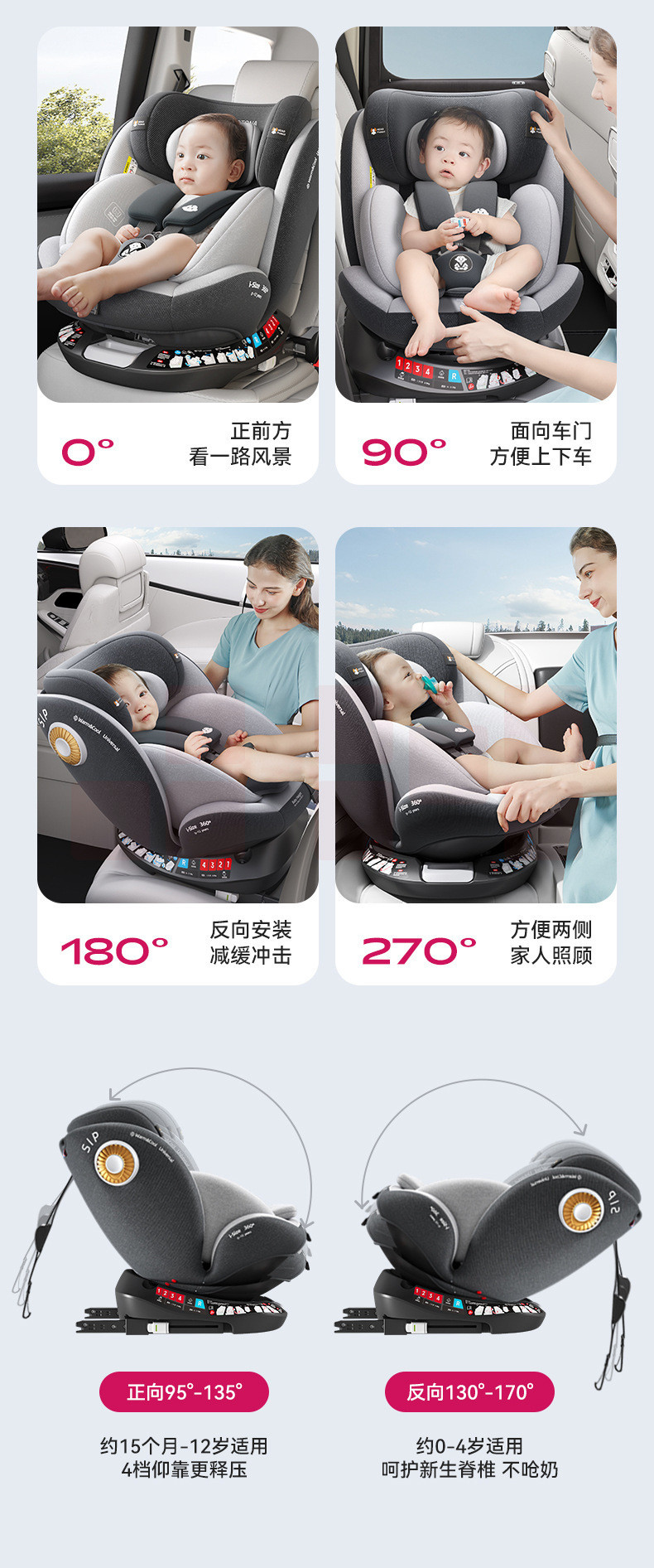 Yotona儿童安全座宝宝汽车用0-4-12岁便携安全坐可坐可躺YT01