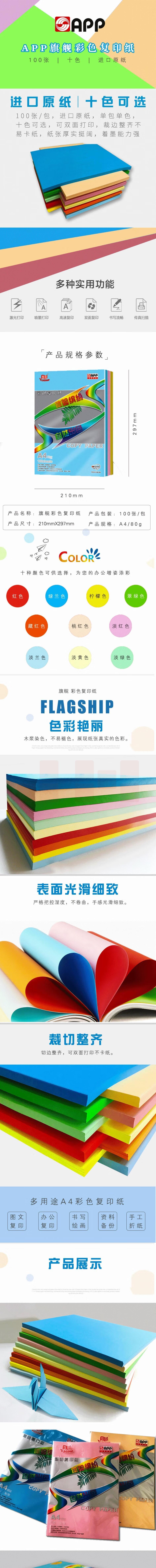彩纸打印纸 A 4 80g 100张/包卡纸 折纸手工纸 颜色备注
