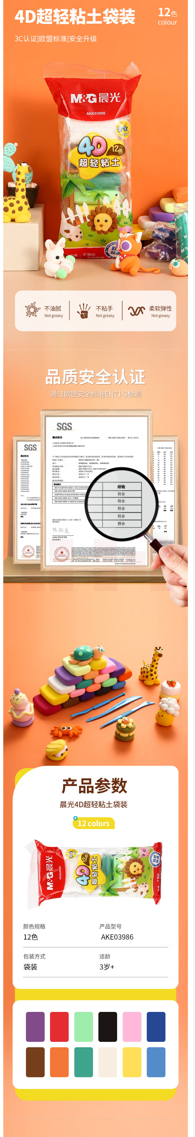 晨光(M&G)儿童手工益智袋装粘土12色超轻粘土彩泥4D橡皮泥DIY玩具AKE03986
