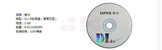 紫光 DVD+R DL光盘/刻录盘 8速8.5G 单面双层 桶装10片 空白光盘