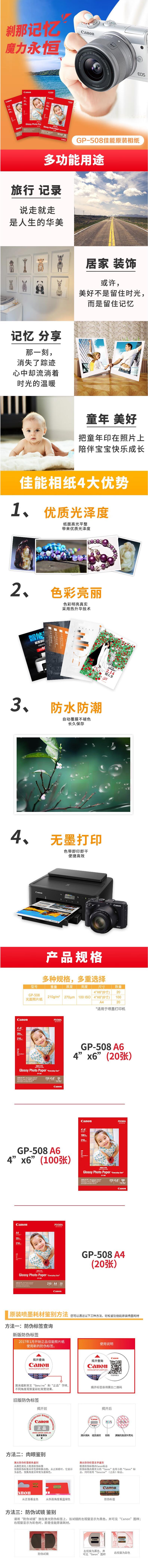 佳能 相纸6寸照片纸GP-508相片纸10*15cm 100张/包