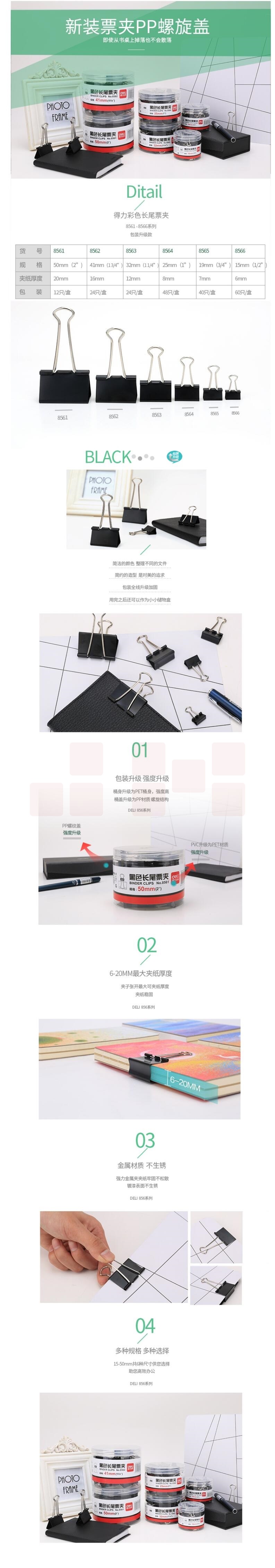 得力(deli) 8562 24 只41mm 黑色长尾夹票夹 金属燕尾夹票据夹子