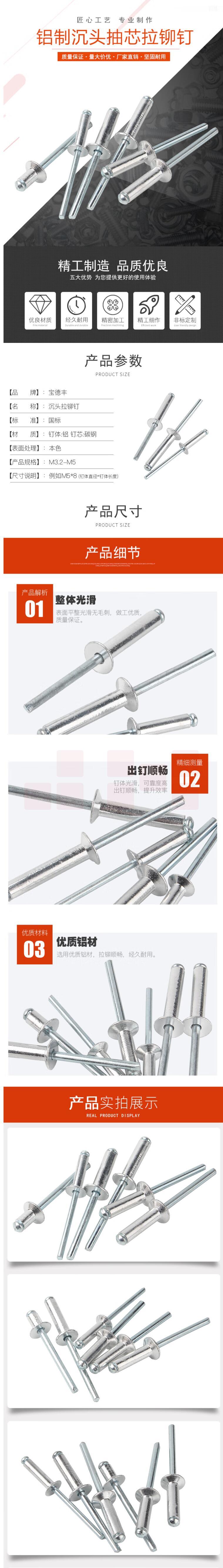 拉铆钉6*12铝制抽芯铆钉铝拉铆钉100个