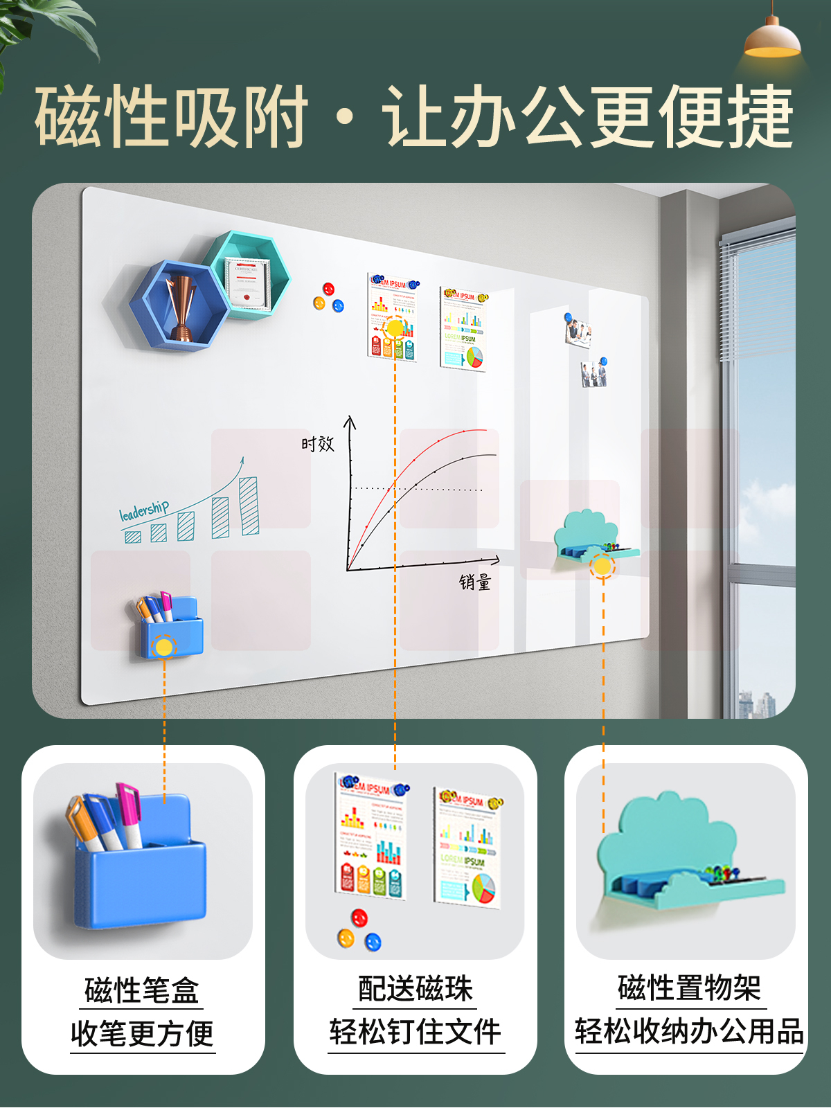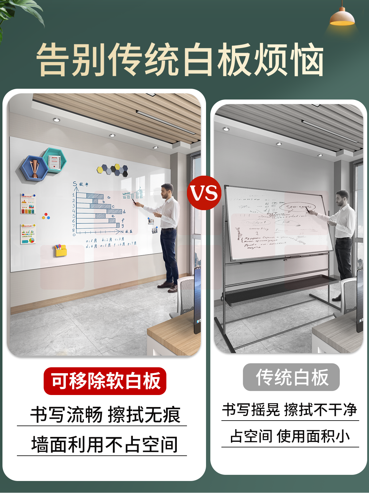 白板墙贴可移除磁性办公室在墙上儿童教学画板不伤墙磁吸家用小黑板贴玻璃磁力可擦白板贴支架办公白板写字板