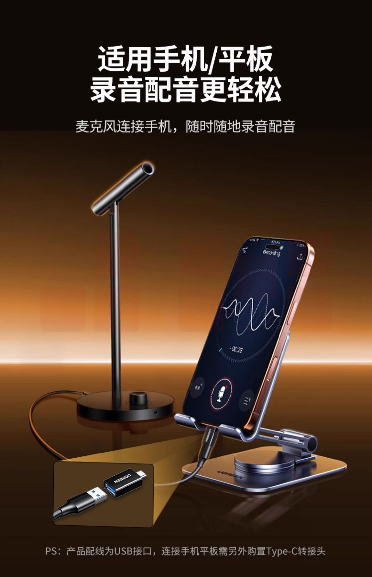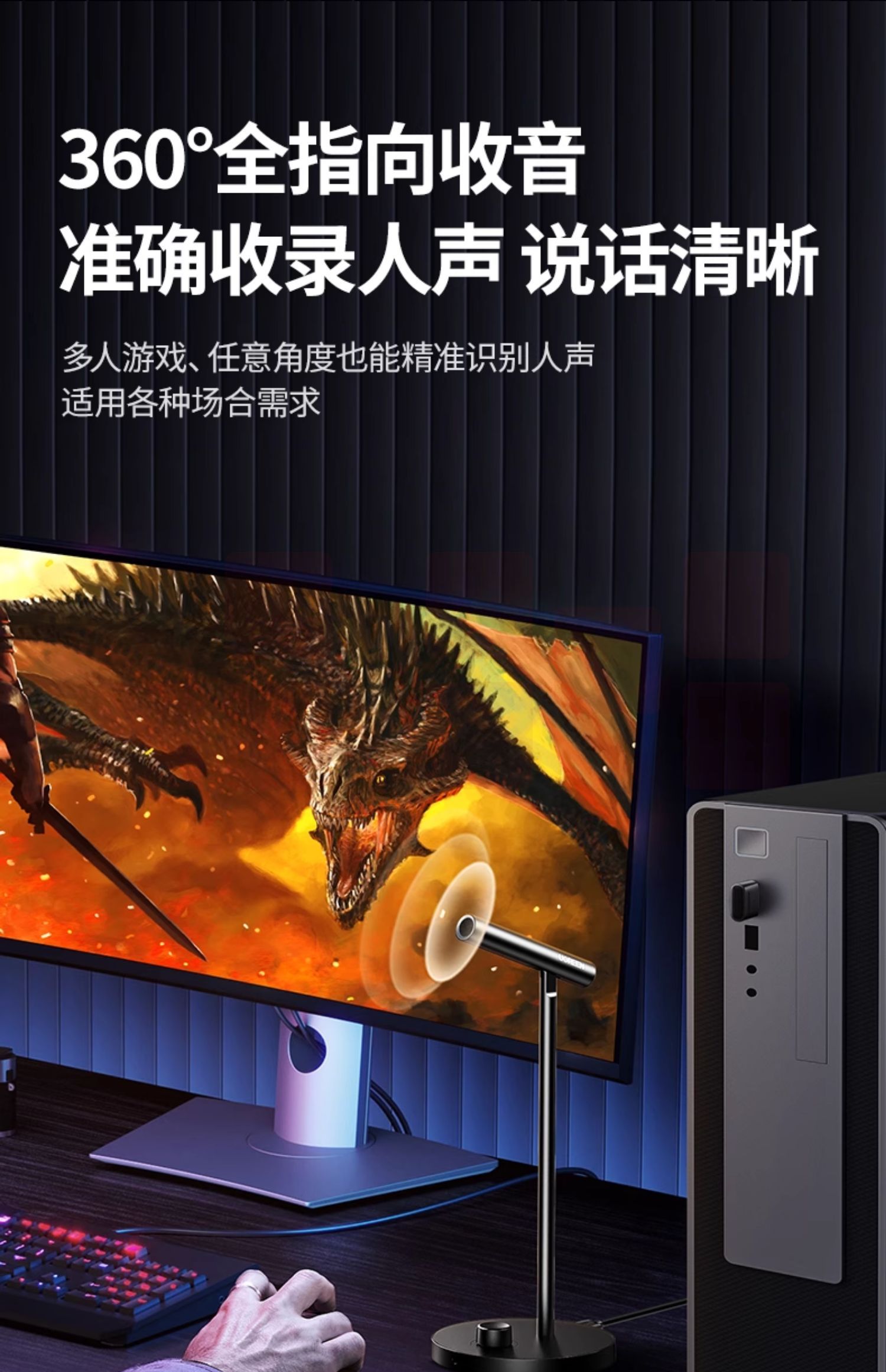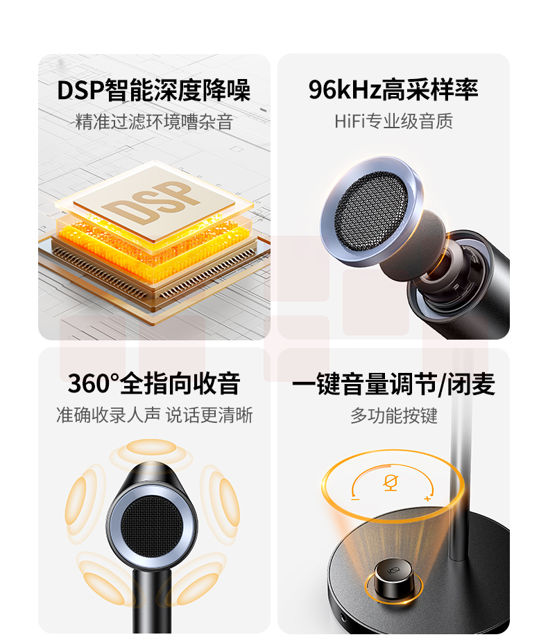 绿联麦克风电脑台式直播专用游戏降噪话筒家用收音桌面笔记本usb 【标准款】48kHz高采样★360°全指向拾音★金属鹅颈杆身 外被软管