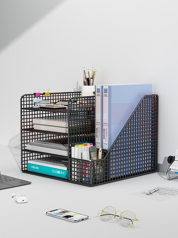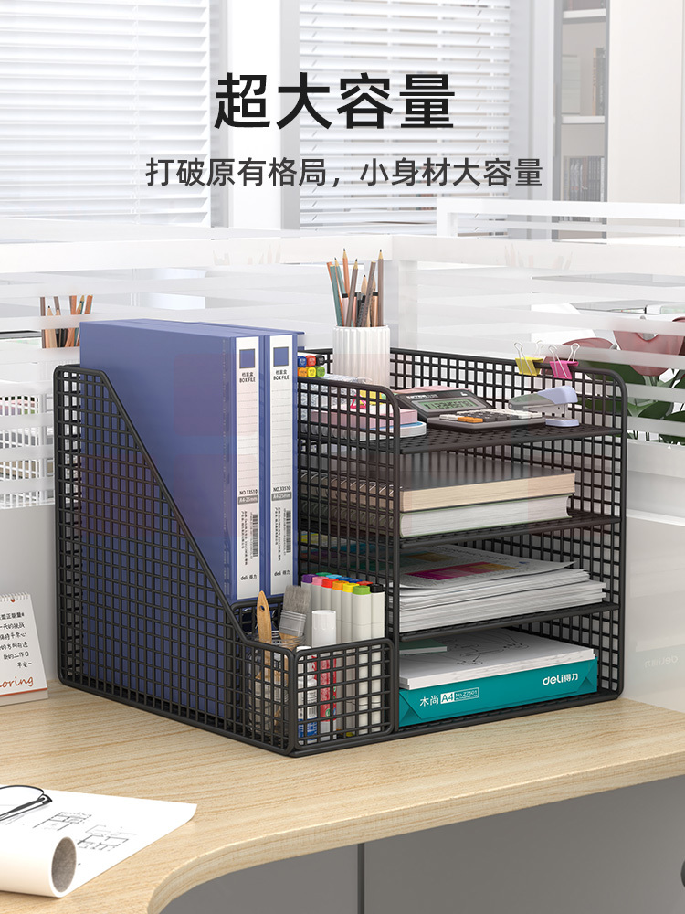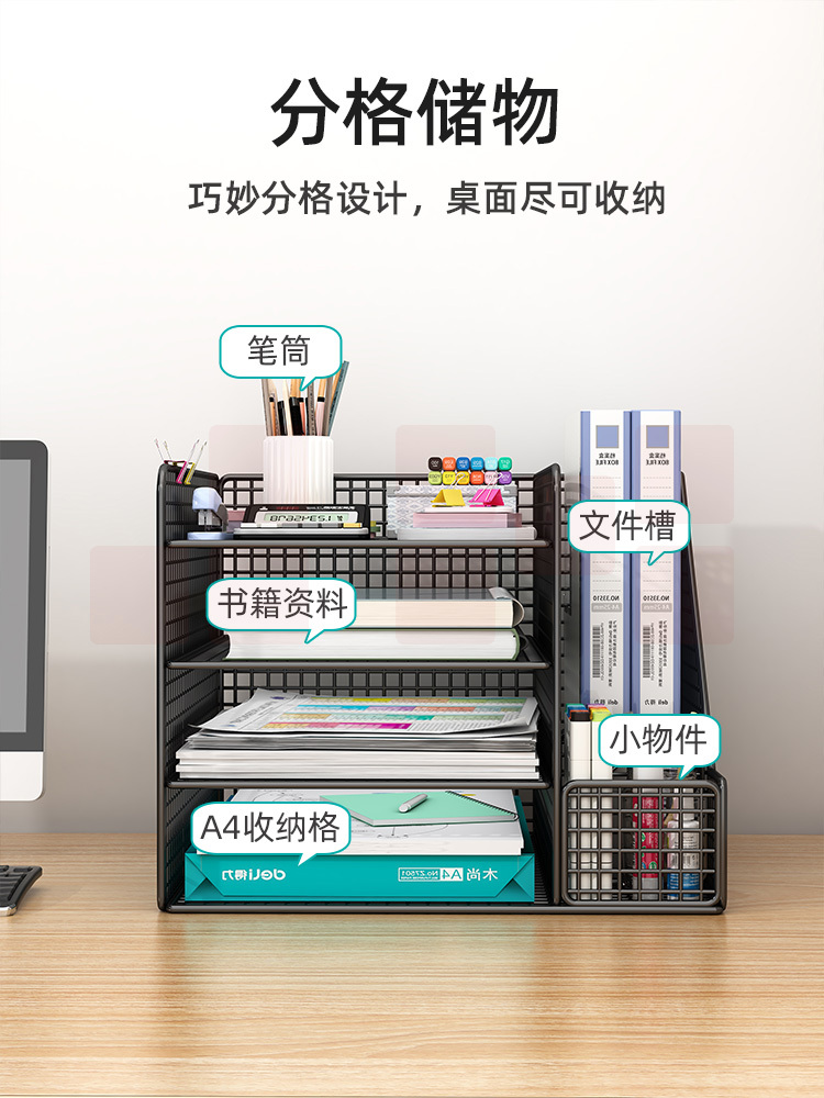 办公桌面置物架文件收纳架文件收纳盒办公用品大全多层文件架A4文件框文件夹资料档案整理架铁艺金属书立架子