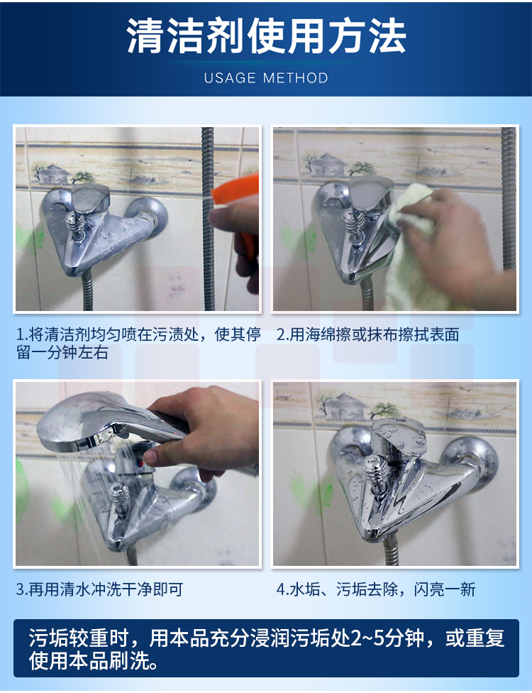博士手 浴室除水垢清洁剂 卫生间不锈钢水龙头淋浴房玻璃水垢清洗