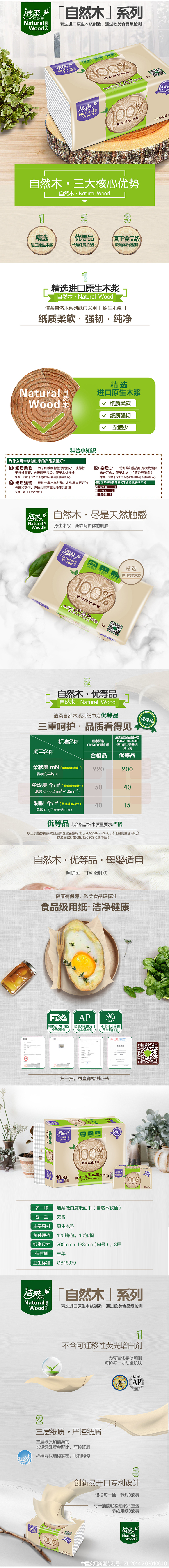 洁柔 低白度自然木软抽纸面巾MR002-01200*133mm 3层 120抽 10包