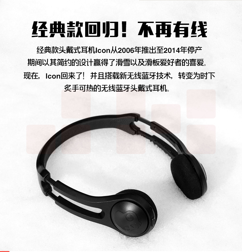 骷髅头 ICON 蓝牙头戴式耳机 黑色