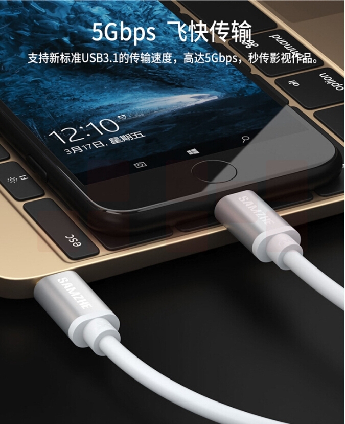 山泽 Type-C公对公数据线 USB3.1传输 3A快充充电器线 双头USB-C手机转接头线 苹果MacBook华为 0.5米 银色