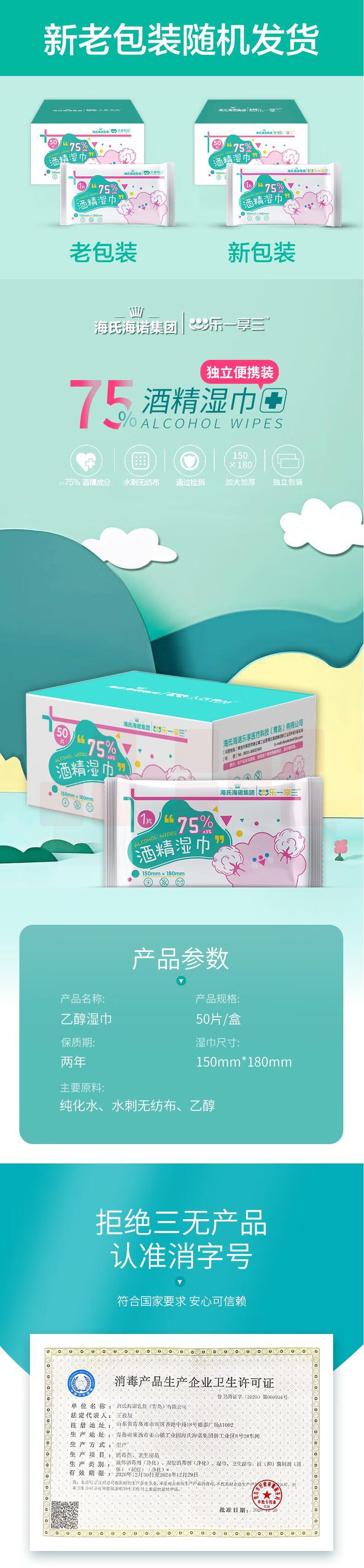 海氏海诺 湿巾 50片/盒 75%含量150*180mm 独立装杀菌消毒湿纸巾 (60盒/箱)