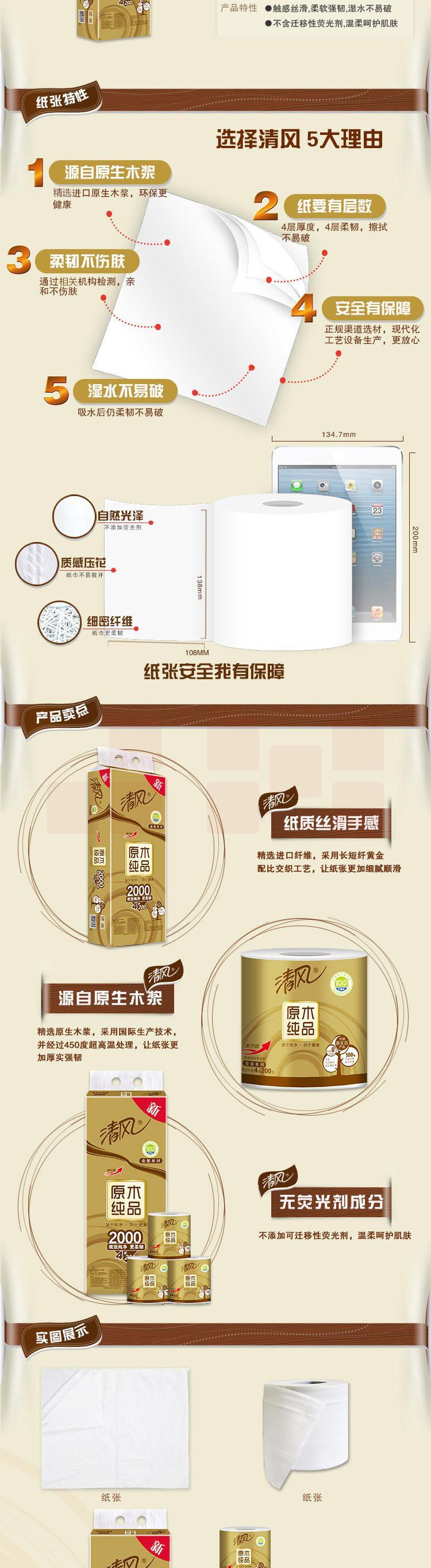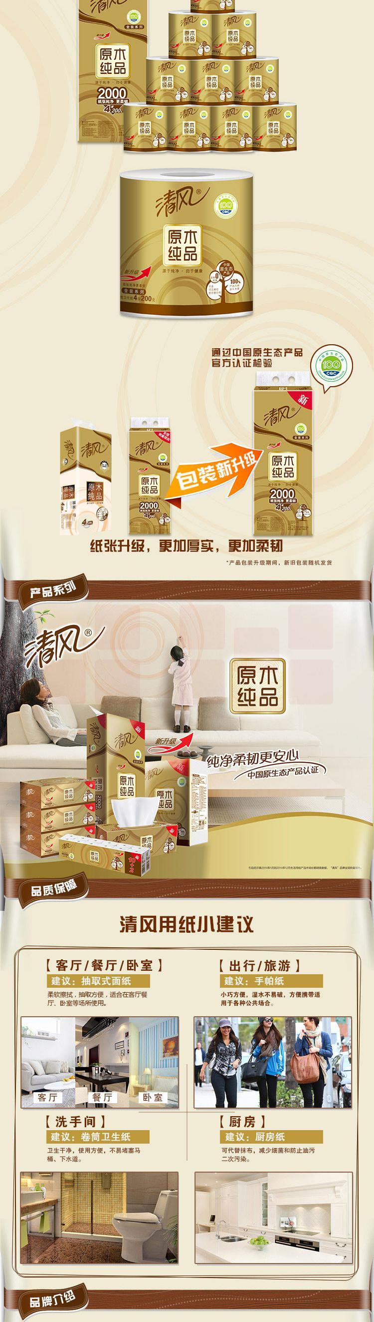 清风 B20AGJ 金装 原木小卷纸 200克*4层 10卷
