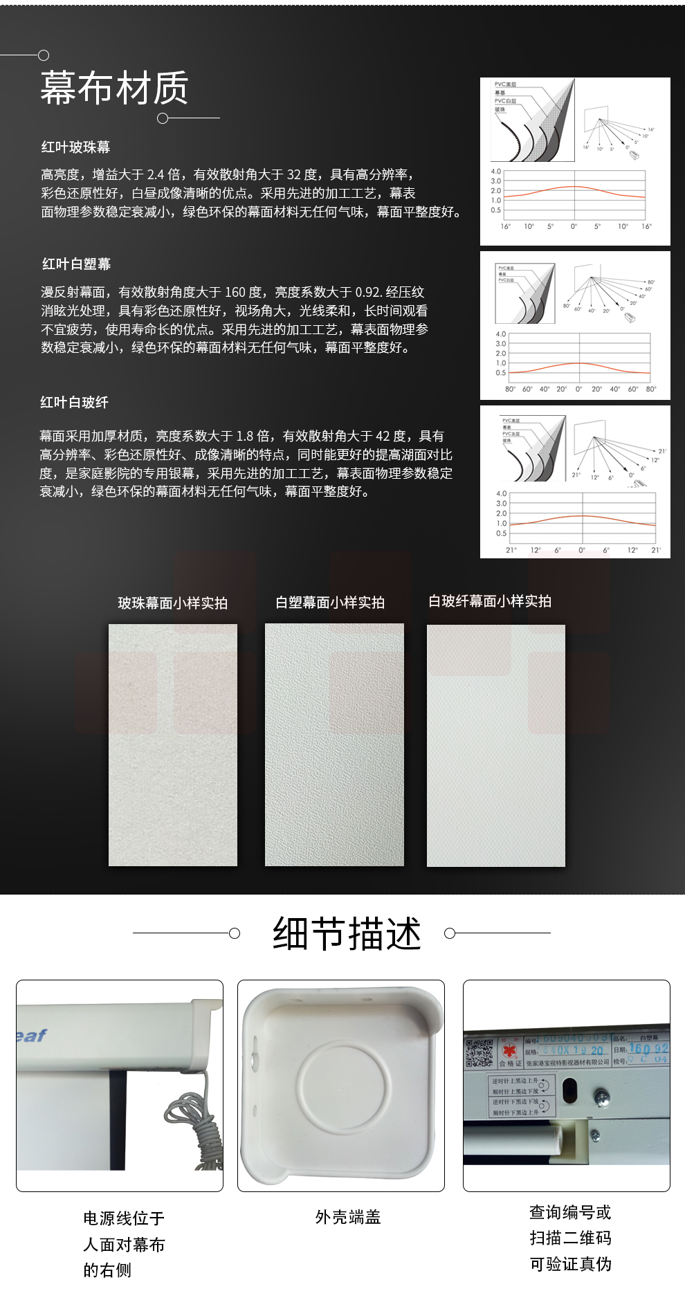 红叶(HONGYE)120英寸 16:9 电动 高清玻纤幕 2.66*1.49