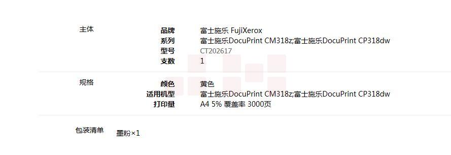 富士施乐(FUJI XEROX)CT202617 黄色墨粉筒(适用于CM318z/CP318dw)