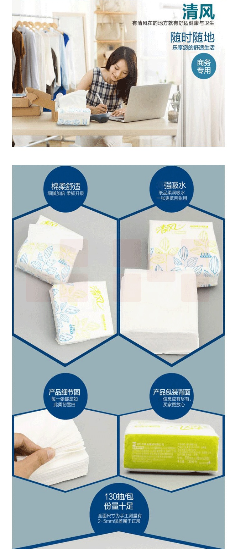 清风 商务面巾纸 BR13A 2层 206*98MM 130抽 96包/箱