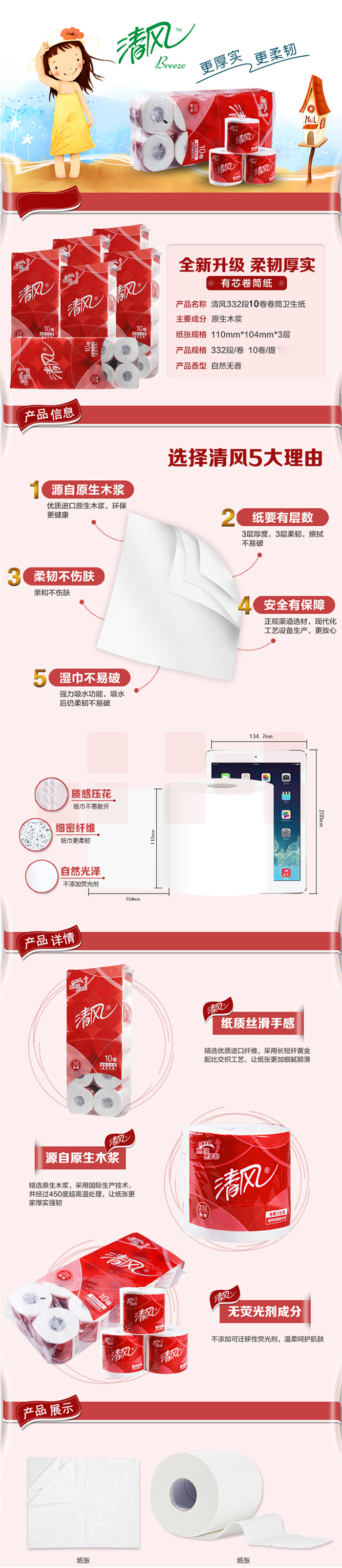 清风 卷筒卫生纸 B20AA8 3层 10卷*6提