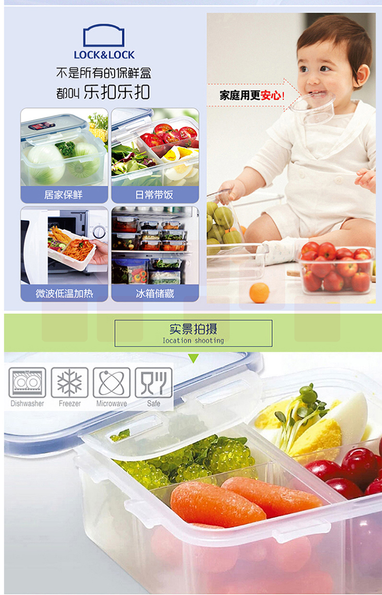 乐扣乐扣 HPL817 1.4L塑料保鲜盒大号装饭盒 大容量密封零食品水果便当盒餐盒 厨房收纳盒冰箱冷冻储物盒子 长方形